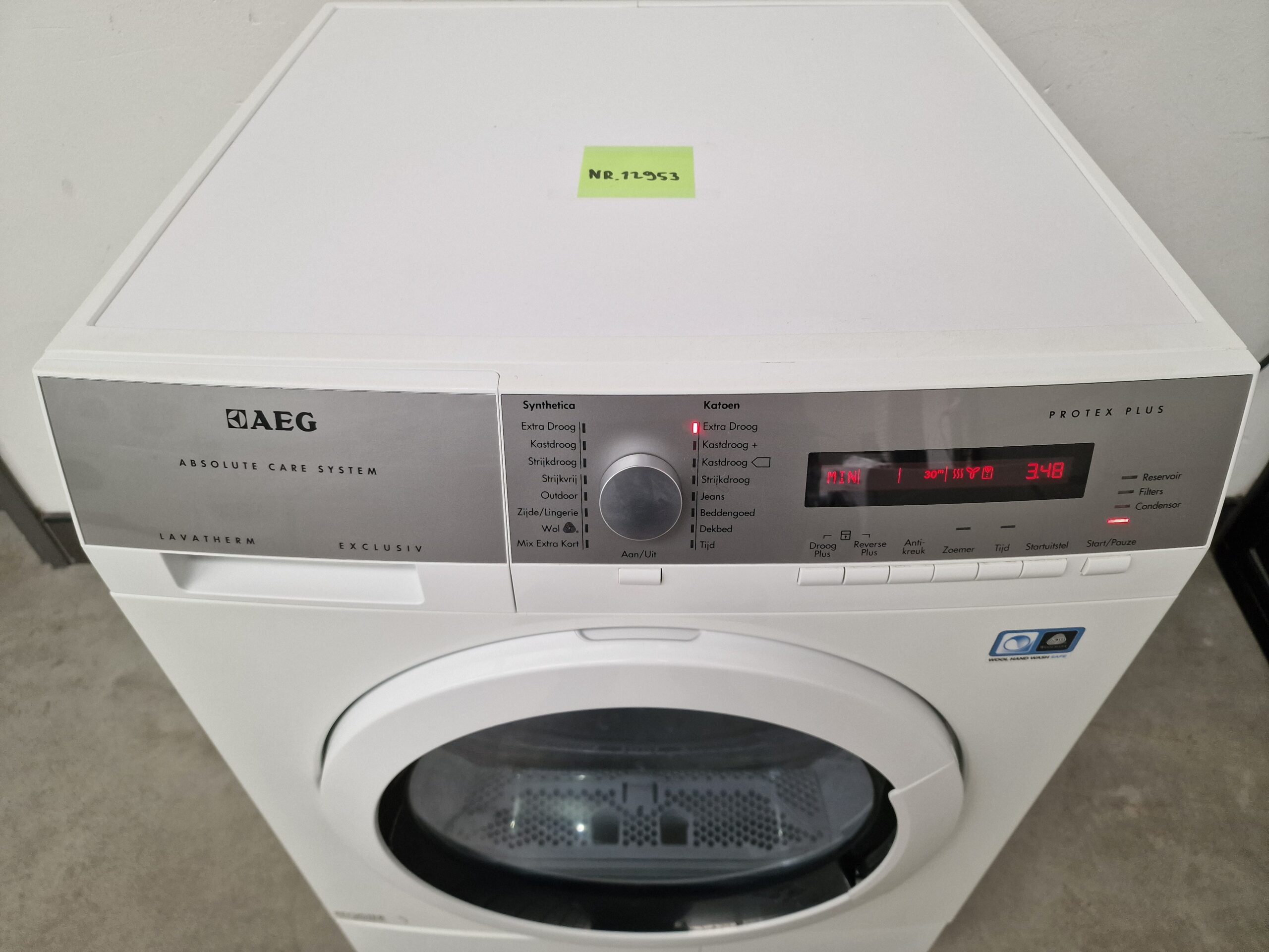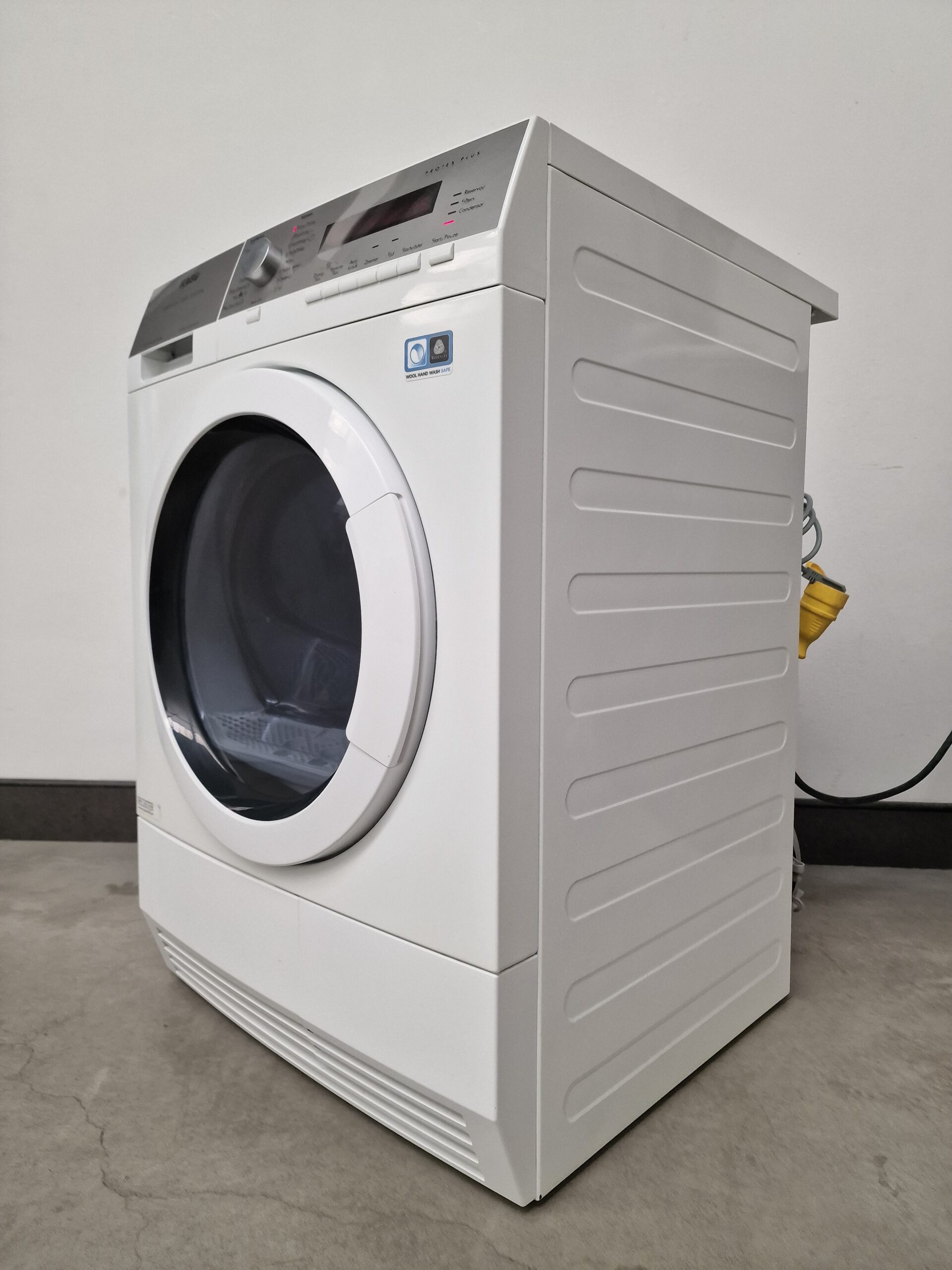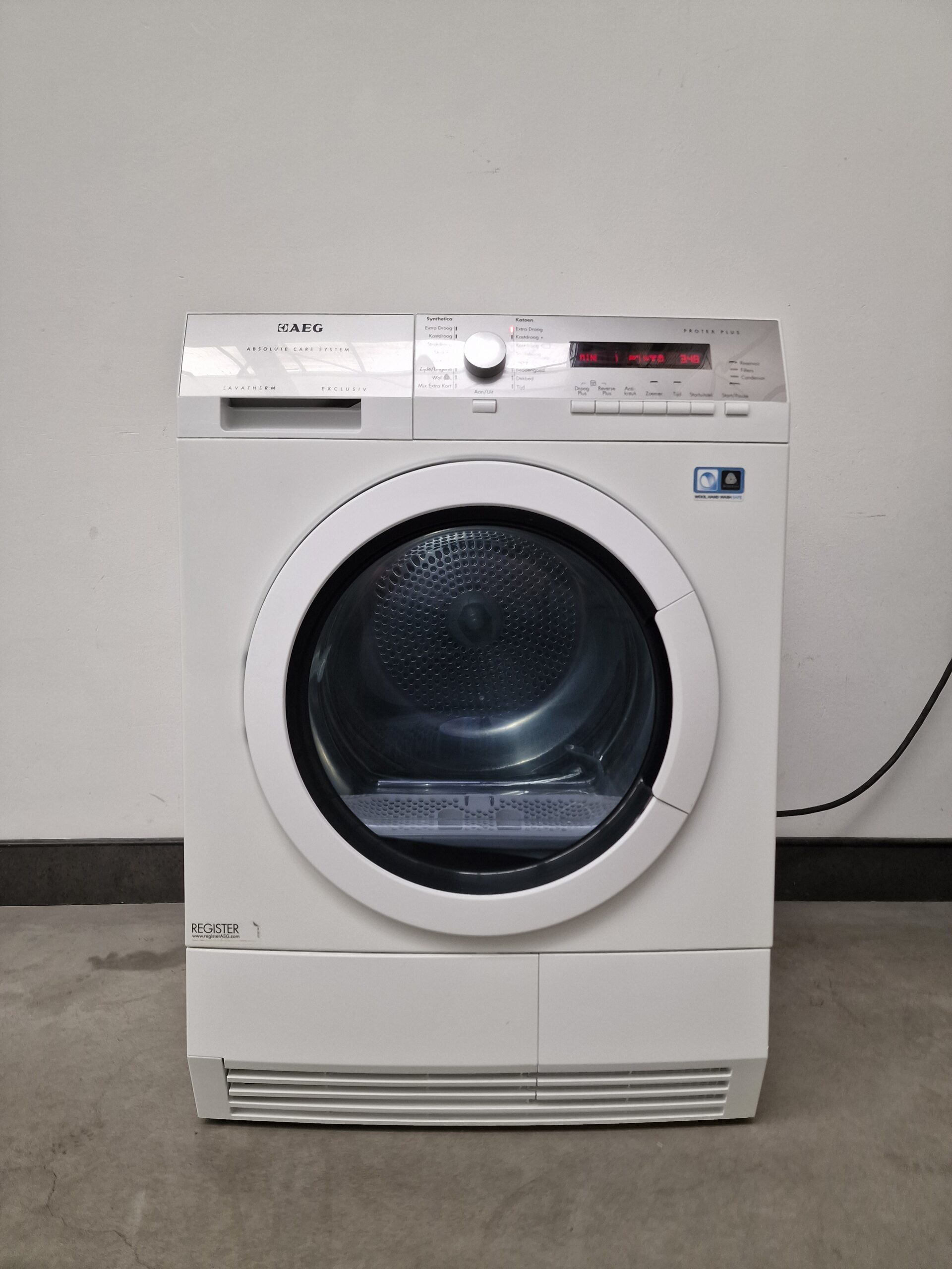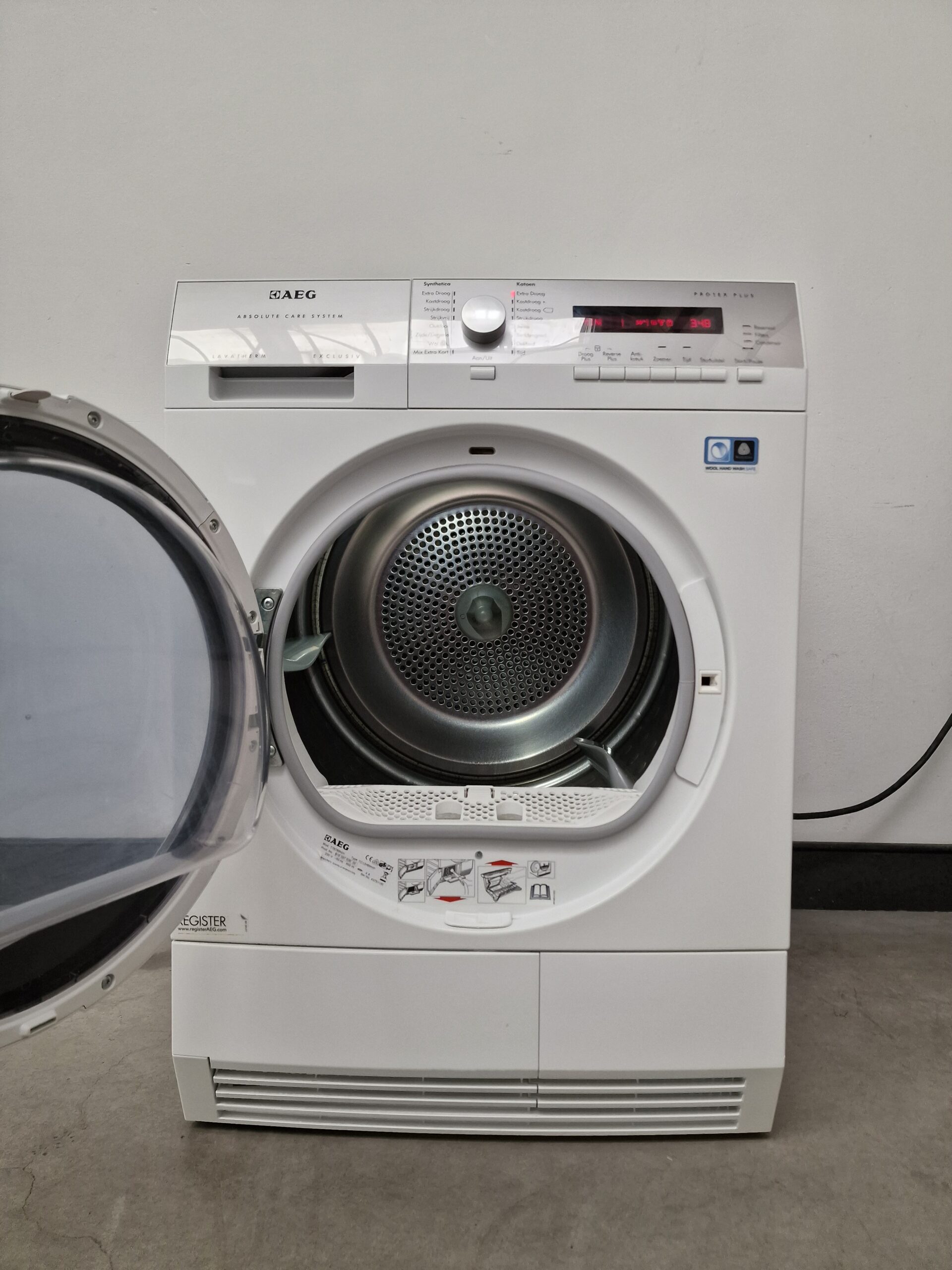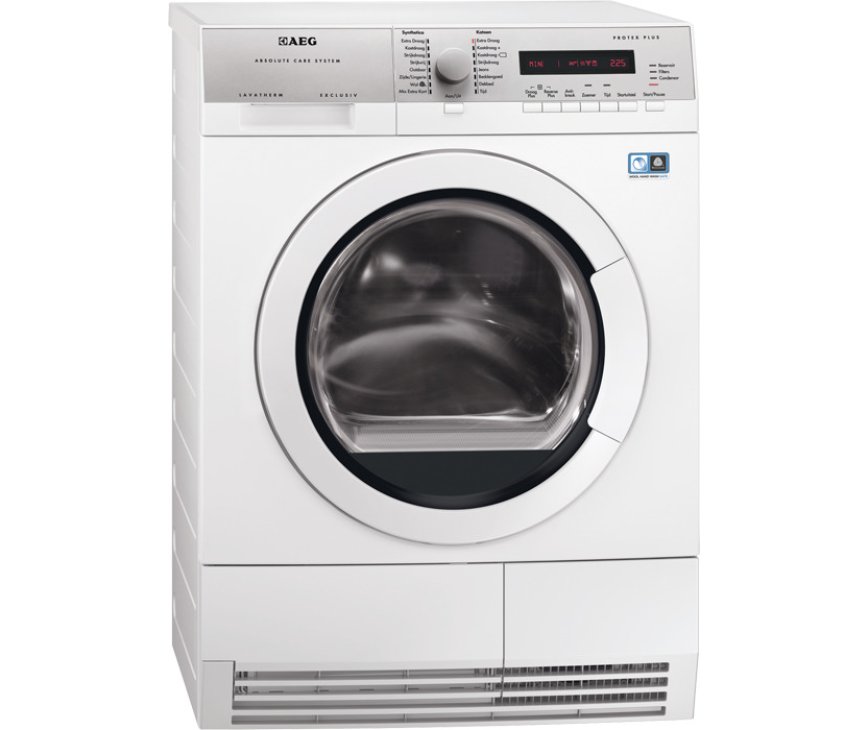 – ProTex Plus-droger voor de zachtste manier om zelfs de fijnste was te drogen. Woolmark Blue gecertificeerd. – AbsoluteCareTM-systeem voor het aangepast drogen van de meest delicate items, zelfs items met het label ‘alleen handwas’, zoals wol en zijde. – Warmtepomptechnologie voor behoedzamer drogen op lagere temperaturen – OptiSense-systeem voor de hoogste efficiëntie, ongeacht de lading – ÖKOFlow-systeem voor hoge luchtstroom, laag energieverbruik en eenvoudig onderhoud – Silent System Plus voor het meest geruisloze droogproces – Zeer zuinig door het gebruik van warmtepomptechnologie – Groot display – ÖKOFlow-systeem voor laag energieverbruik en eenvoudig onderhoud – Maximaal vulgewicht: 8.0 kg – Paneel met tekst in het Nederlands – Katoen programma’s: kastdroog|kastdroog plus|extra droog|strijkdroog – Synthetica programma’s: kastdroog|extra droog|strijkdroog – Startuitstel – Met startuitstel kunt u met één druk op de toets de start van het programma enkele uren uitstellen – bijvoorbeeld tot de daluren – Extra lange antikreukfase na elk programma. – Als u het wasgoed niet meteen uit de droger kunt halen wanneer het programma is afgelopen, zorgt de extra lange antikreukfase ervoor dat het wasgoed niet gaat kreuken. Deze optie voegt 60 minuten extra toe aan de standaard 30 minuten anti-kreukfase aan het eind van het droogproces. – Energieverbruik (programma katoen kastdroog): 0 (1.94) na centrifugeren op 1400 (1000) tpm – Reverserende trommel – Alle droogautomaten werken met een reverserende trommelbeweging. Hierdoor kunt u grote stukken wasgoed drogen met een verminderde kans op het in elkaar draaien. Het droogresultaat is gelijkmatiger dan bij trommels die maar één kant op draaien. – Sensordroger: de droger voelt wanneer de gewenste droogtegraad is bereikt – De droger stopt automatisch wanneer de ingestelde droogtegraad is bereikt. – Extra tijdgestuurde droogprogramma’s – Indicatie van programmafasen: anti-kreuk/einde|afkoelfase|kastdroog|drogen|extra droog|strijkdroog|licht droog|zeer droog – Indicaties voor: Condensor reinigen|zeef|reservoir legen – Geluidssignaal bij programma einde – Condenswaterreservoir: linksboven in bedieningspaneel, 5.28 liter – Stelpoten: 4 verstelbare voetjes