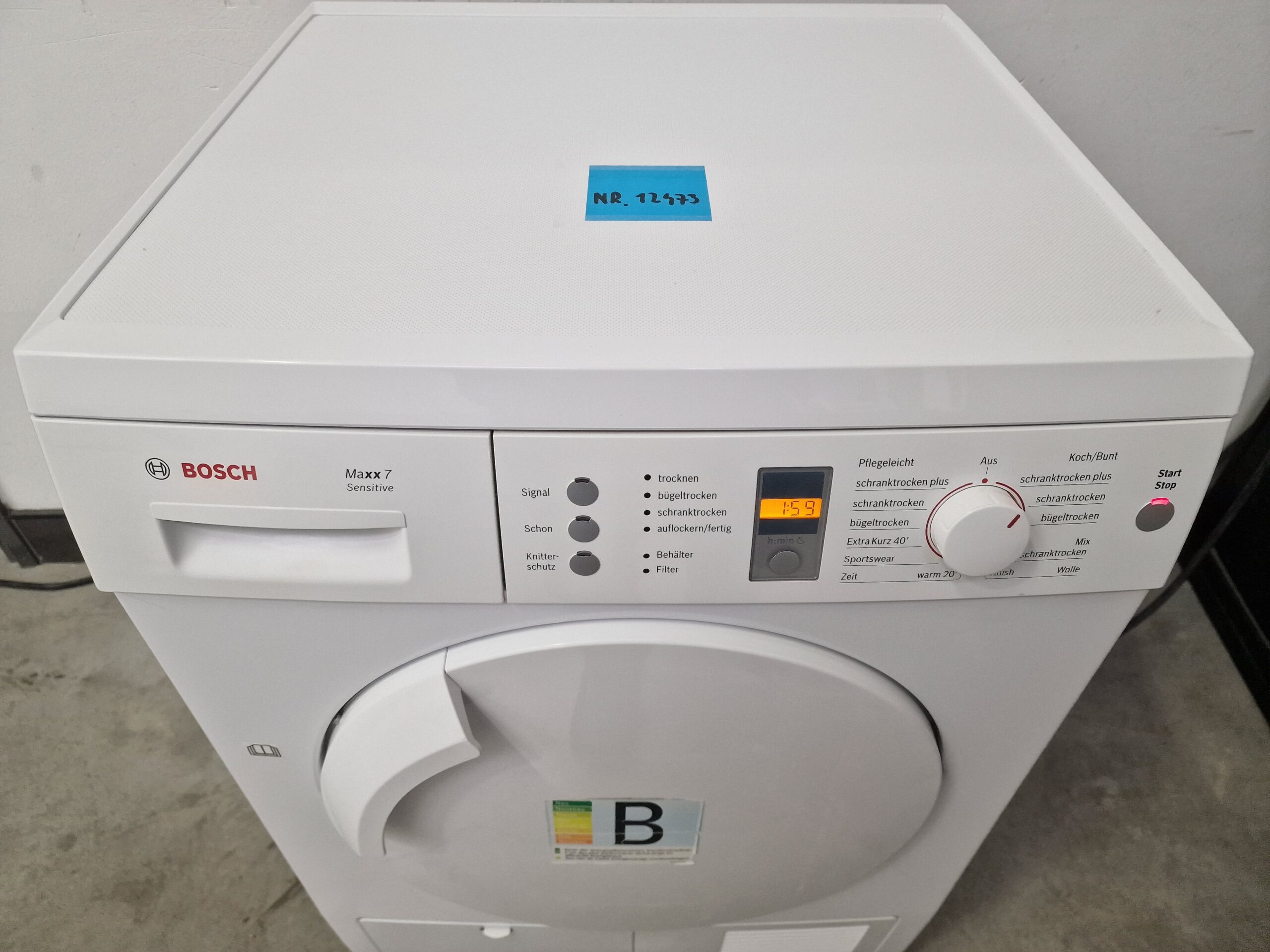 Energieverbruik van 497,0 kWh / jaar op basis van 160 droogcycli voor het standaard katoenprogramma met volledige en gedeeltelijke vulling, evenals het verbruik van de bedrijfsmodi met een laag stroomverbruik. Het werkelijke energieverbruik per cyclus hangt af van het type gebruik van het apparaat