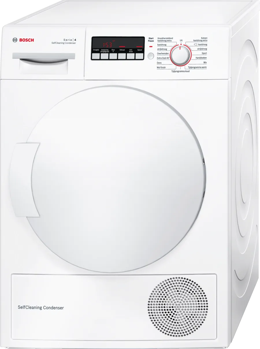 BOSCHDe warmtepompdroger 8 kg A++ met SelfCleaning Condensor™: de enige droger die zijn energielabel van A++ behoudt gedurende zijn levensduur door het schoonhouden van de condensor.