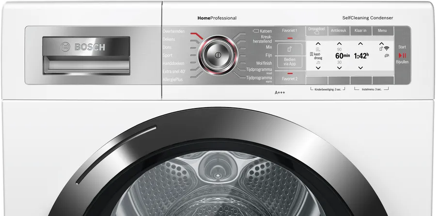 De HomeProfessional droger met SelfCleaning Condensor™: de enige A+++ droger die zelf de condensor voor u schoonmaakt. Nu tot 35 minuten sneller drogen.