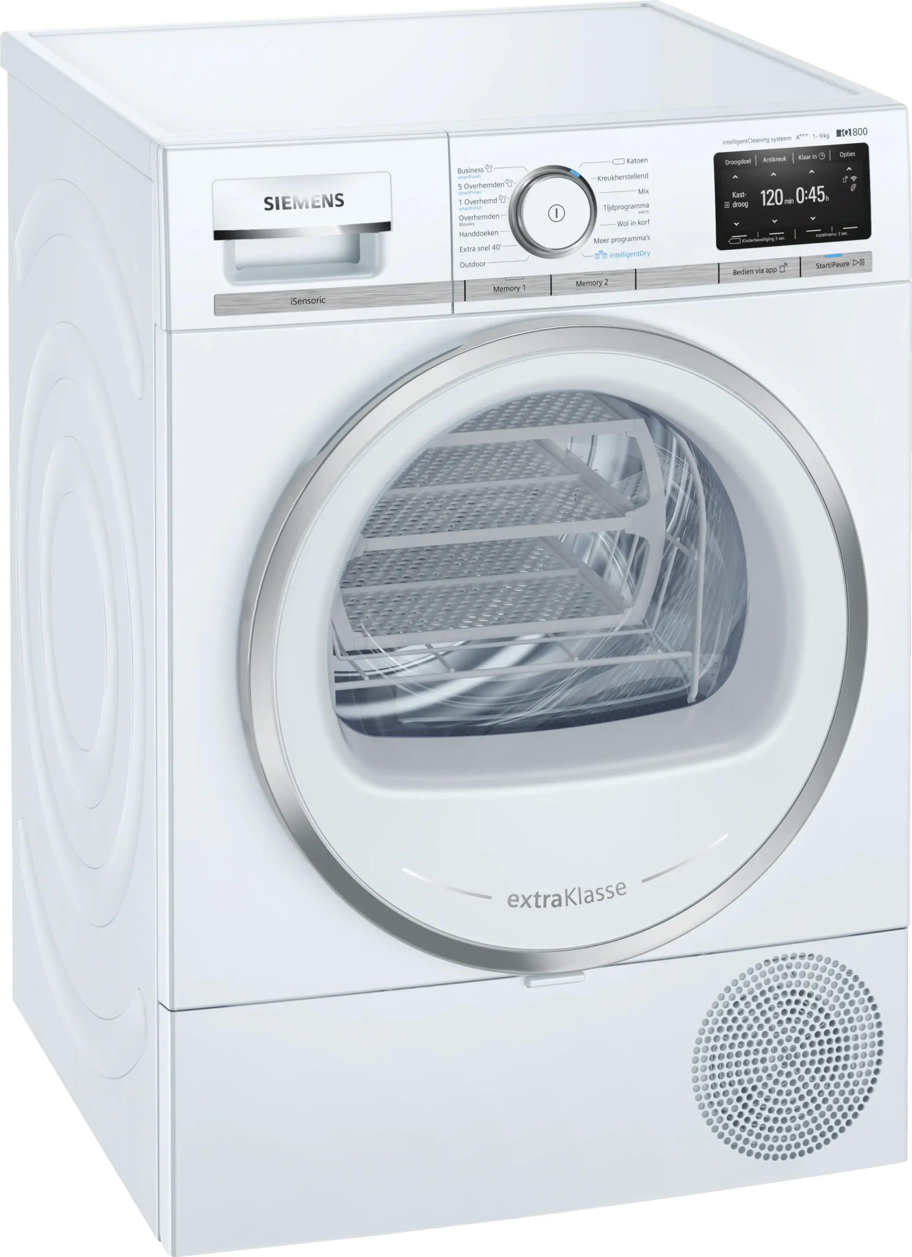 Door het IntelligentCleaning systeem van de Siemens WT8HXE90NL warmtepompdroger, hoef je maar eens per twintig droogbeurten het filter schoon te maken. Hiermee bespaar je tijd aan onderhoud. heb je niet veel tijd? gebruik dan het 40 minuten droogprogramma. Voor nog meer gemak is de droger te bedienen via de HomeConnect app. Het krimpen van je kleding wordt voorkomen door AutoDry en de SoftDry trommel droogt je kleding zacht.
