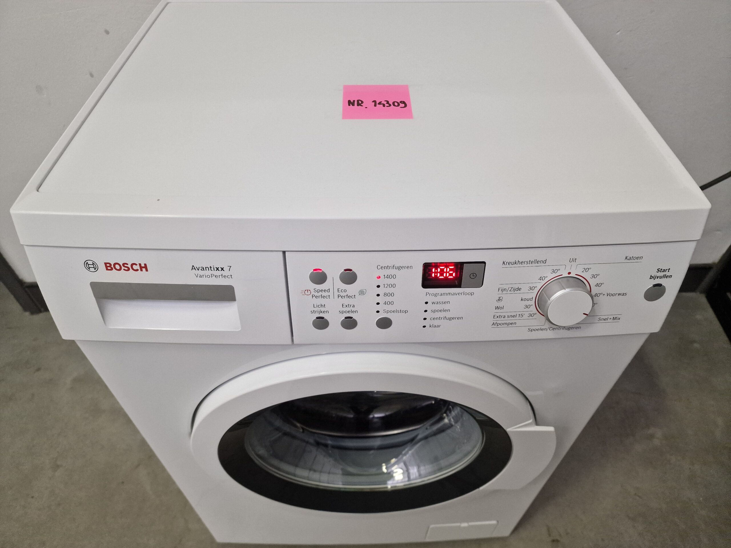 – ToetsenTouchControl toetsen met LED indicatie: start/bijvullen, licht strijken, extra spoelen, ecoPerfect, speedPerfect, centrifugetoerentalkeuze/spoelstop