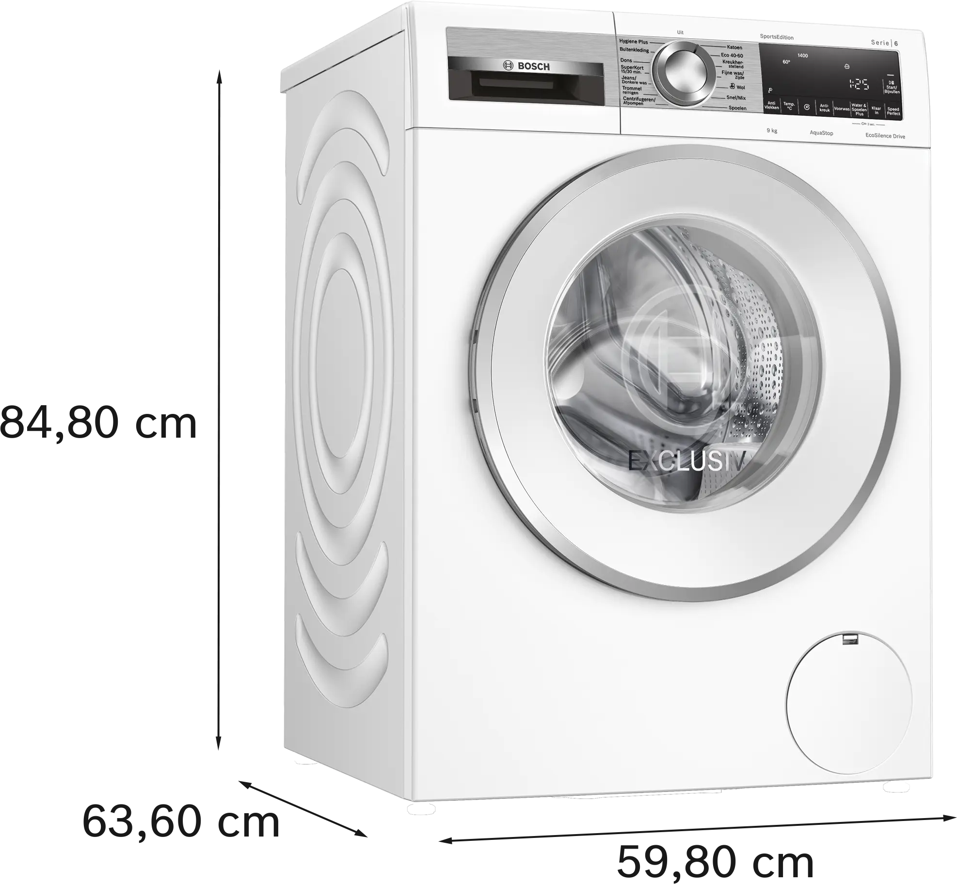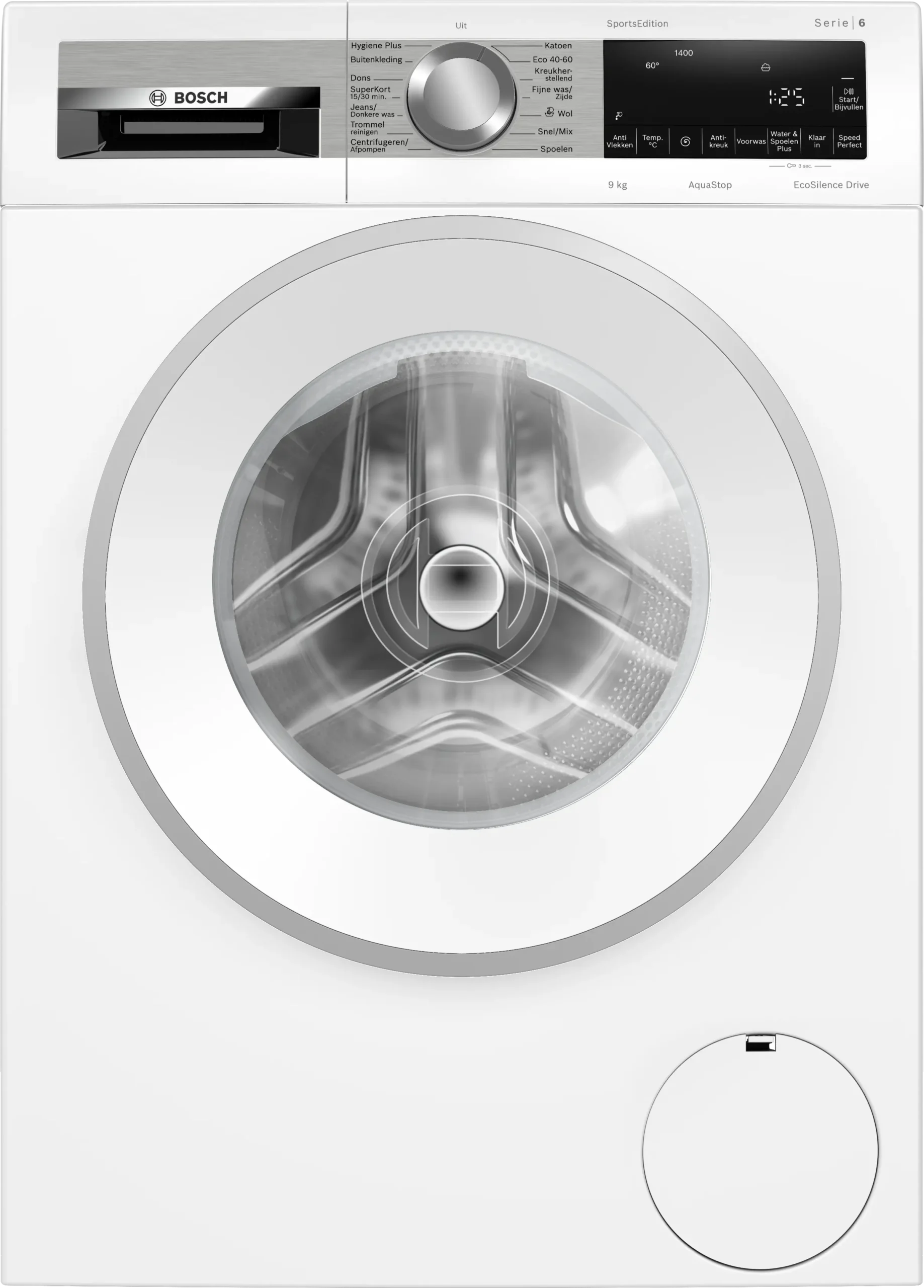 Gekozen kan worden uit 14 verschillende wasprogramma’s waaronder een allergie- en sportprogramma. Andere voorkeuren zoals temperatuur-, toerental- en eindtijdkeuze kunnen worden ingesteld via het DirectSelect-display met verlichte programmaknoppen. De Bosch beschikt over een SpeedPerfect en EcoPerfect-functie. Maak gebruik van de SpeedPerfect-functie wanneer je snel en schone was nodig hebt. Gaat de voorkeur uit naar energiezuinig wassen dan kan er beter gekozen worden voor de EcoPerfect-functie.